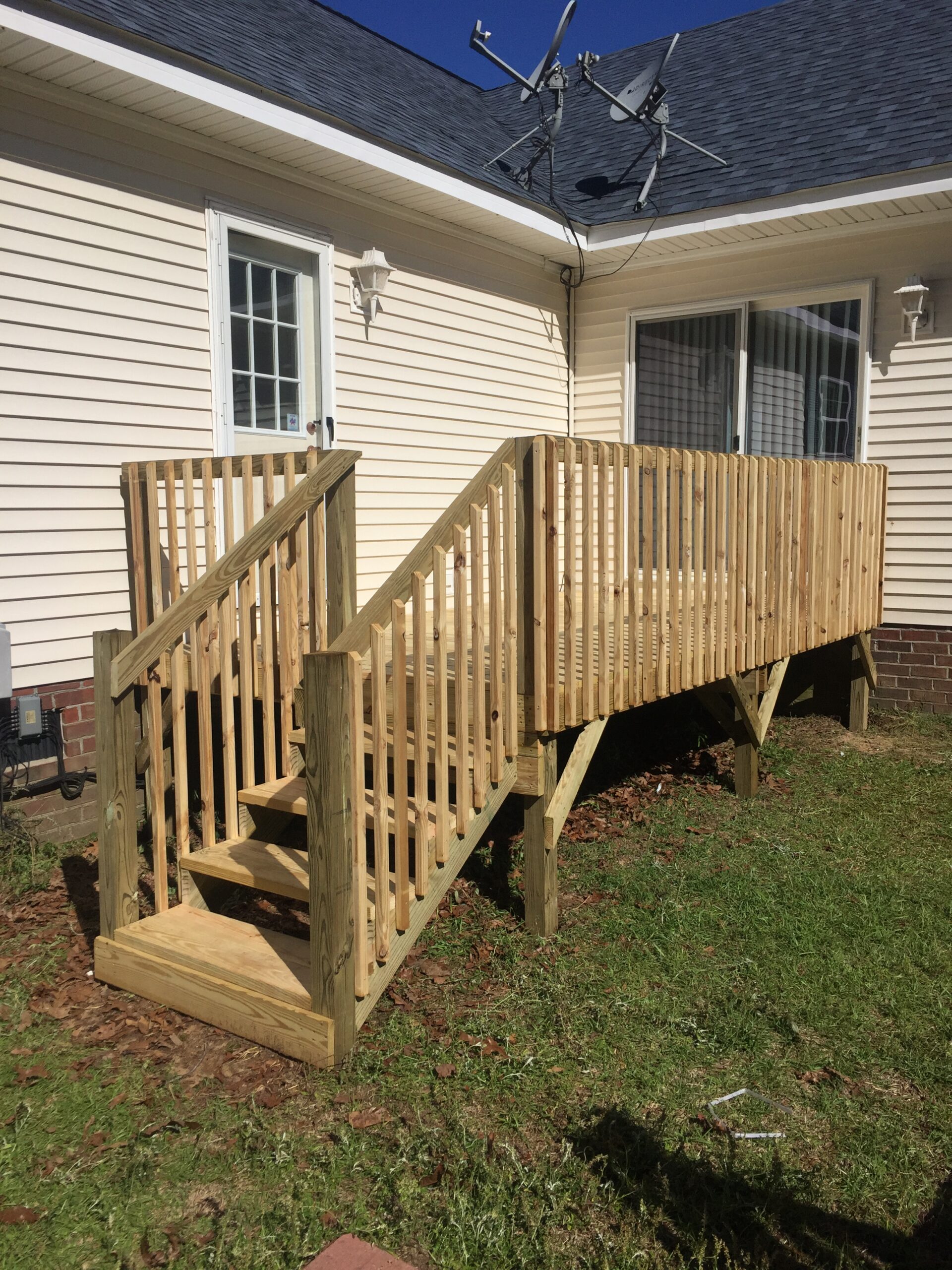 Other deck sizes are available. All decks are built with treated lumber. County code approved. Some pictures are not correct representation.